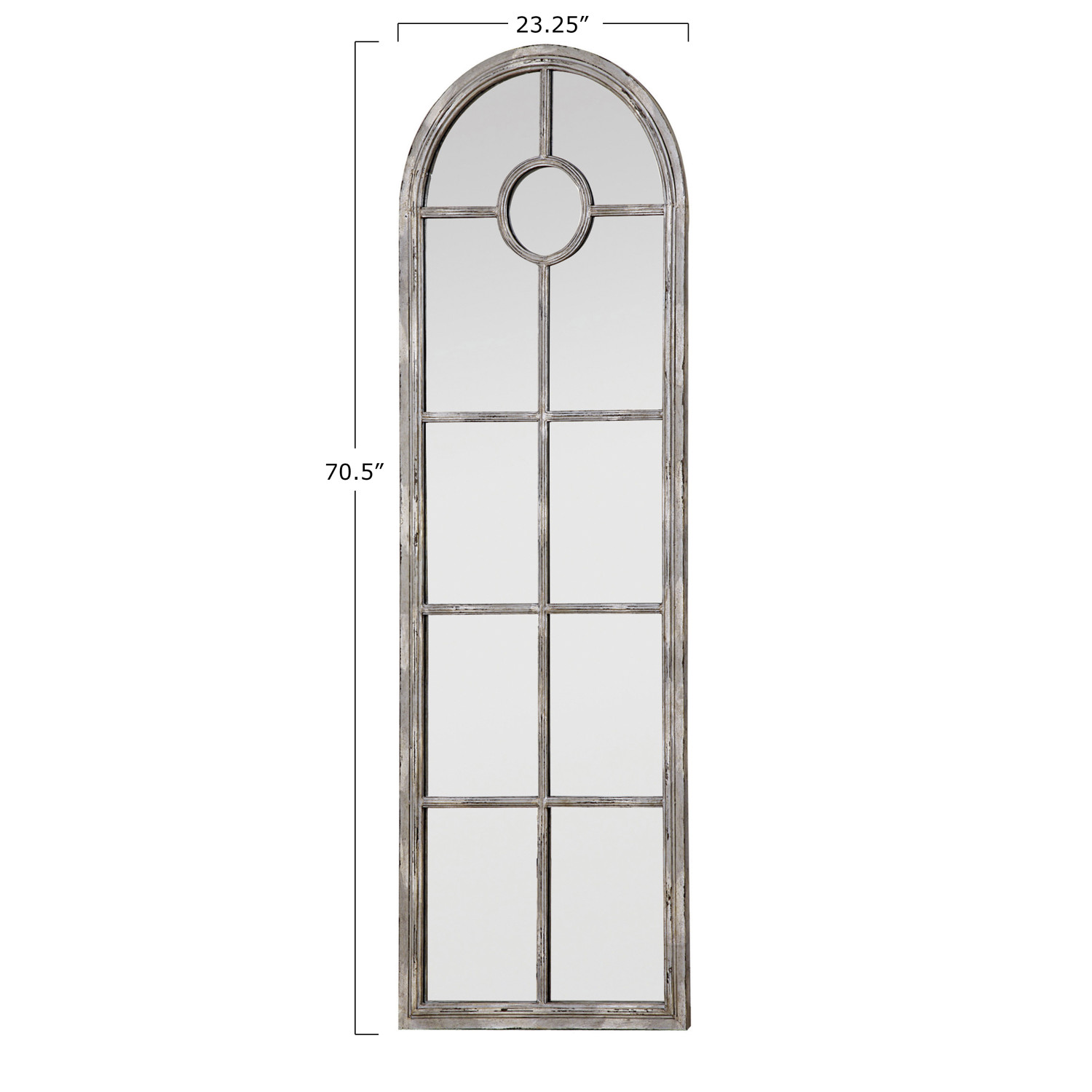 Bring light and depth into your home by adding this tall mirror with arched top. The mirror's metal frame has a distressed white finish giving it a cozy cottage appearance. Perfect for an entryway or hallway, this mirror is perfect for nearly any home.
