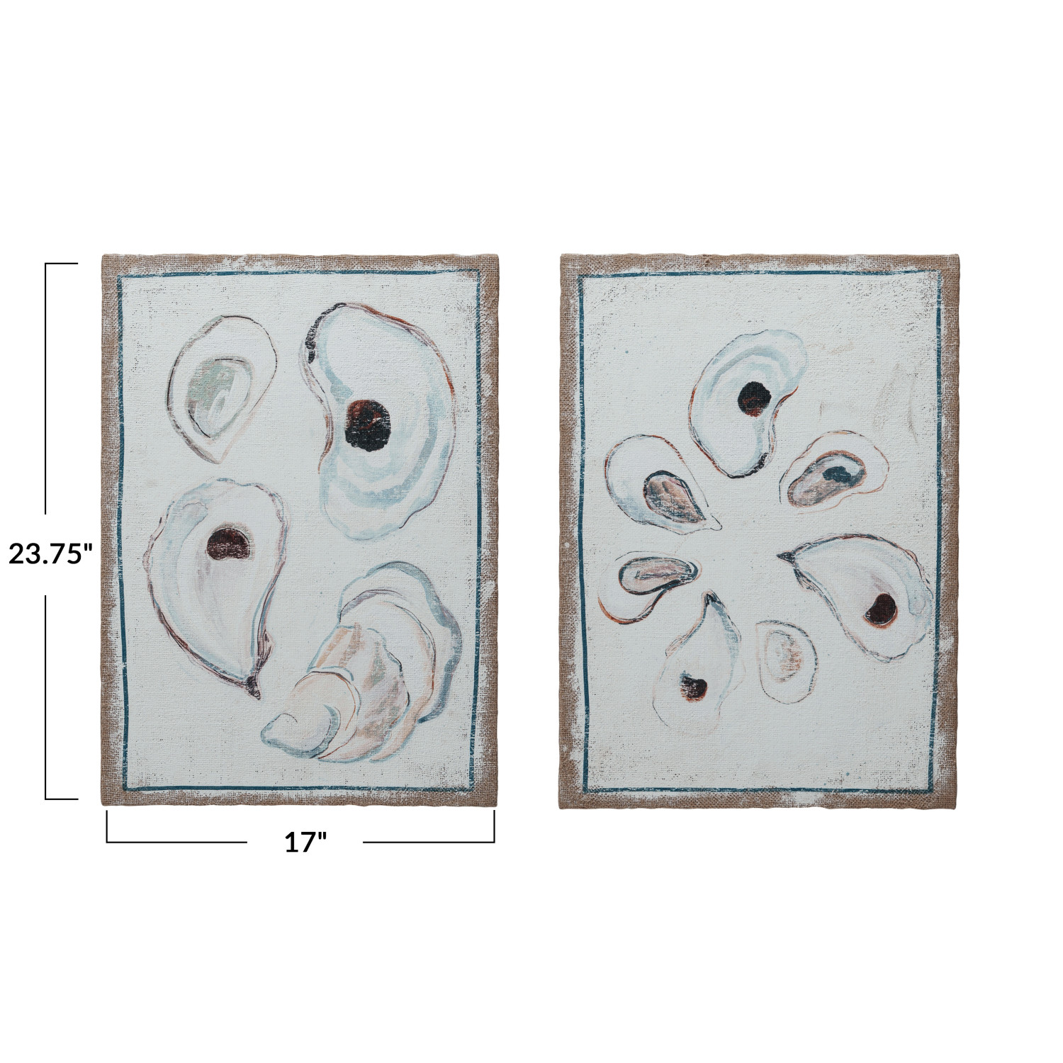 Catalog Name: 17"W x 23-3/4"H Plastered Burlap Wall Décor w/ Oyster Print, Distressed Finish, Multi Color, 2 Styles ©