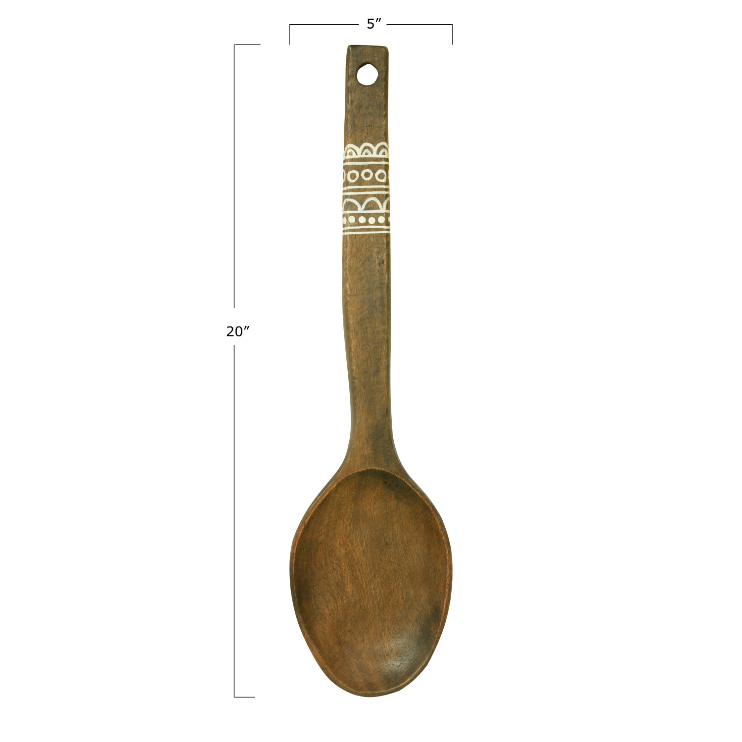 Catalog Name: 5"W x 20"H Decorative Mango Wood Wall Hanging Spoon w/ Hand-Painted White Pattern, Natural