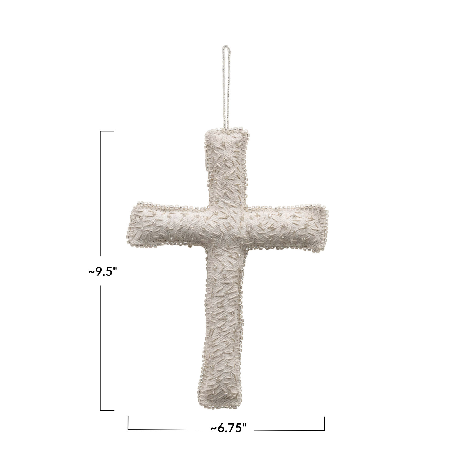 Catalog Name: Approximately 6-3/4"L x 9-1/2"H Handmade Recycled Fabric Cross w/ Glass Beads, Cream Color (Each One Will Vary)